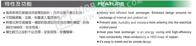 采用密閉型設計,內外空氣不產生對流;可阻隔濕氣、油氣、粉塵進入電控箱內;節(jié)約能源且效率高的傳熱導體,約為銅的1600倍,安全性高;簡化輕巧之設計不佔空間,安裝容易,保養(yǎng)簡單。