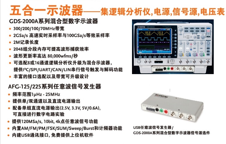 全新多功能實驗工作站,豐富的接口選配以及帶寬可升級設(shè)計;可選配8或16通道邏輯分析儀升級為混合示波器。