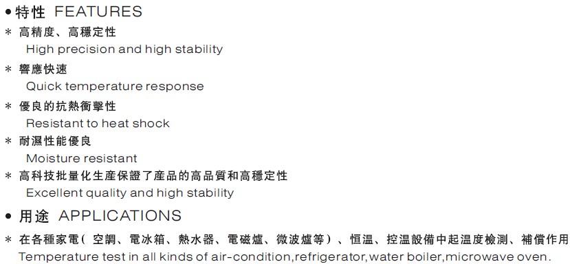 在各種家電、恒溫、控溫設(shè)備中起溫度檢測、補(bǔ)償作用;