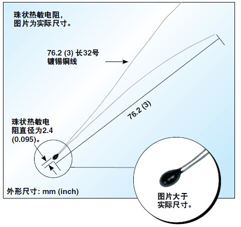 覆有環(huán)氧樹脂涂層的珠狀熱敏電阻;