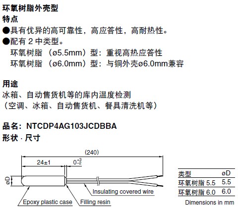 用于冰箱、自動售貨機等的庫內(nèi)溫度檢測;