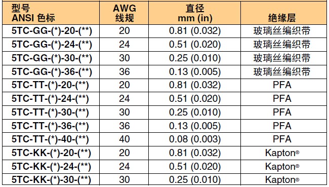 有PFA、Kapton?或玻璃編織帶絕緣層可供選擇;