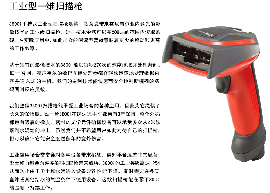 3800i手持式工業(yè)型掃描槍是第一款為您帶來霍尼韋爾業(yè)內(nèi)領(lǐng)先的影像技術(shù)的工業(yè)掃描槍.這一技術(shù)令您可以在208cm的范圍內(nèi)讀取條碼.
