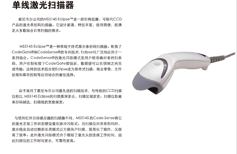 MS5145 Eclipse設(shè)計(jì)緊湊,特征豐富,使用簡(jiǎn)便,能滿足大多數(shù)場(chǎng)合日常掃描的需求.與傳統(tǒng)的CCD掃描儀相比,MS5145Eclipse的掃描景深更長(zhǎng),掃描區(qū)域更寬.掃描儀距離條形碼越遠(yuǎn),掃描的寬度越寬.