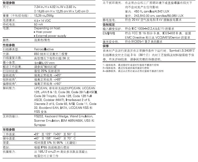 Symbol LS3408FZ掃描器可以快速精準(zhǔn)的識(shí)別工業(yè)環(huán)境中常見的受損、污濁或印制效果差的一維條碼,Symbol LS3408FZ不僅具有前所未有的堅(jiān)固耐用性而且符合人體工程學(xué)設(shè)計(jì),并提供多種操作功能,可滿足高強(qiáng)度工業(yè)級(jí)掃描應(yīng)用的需要.