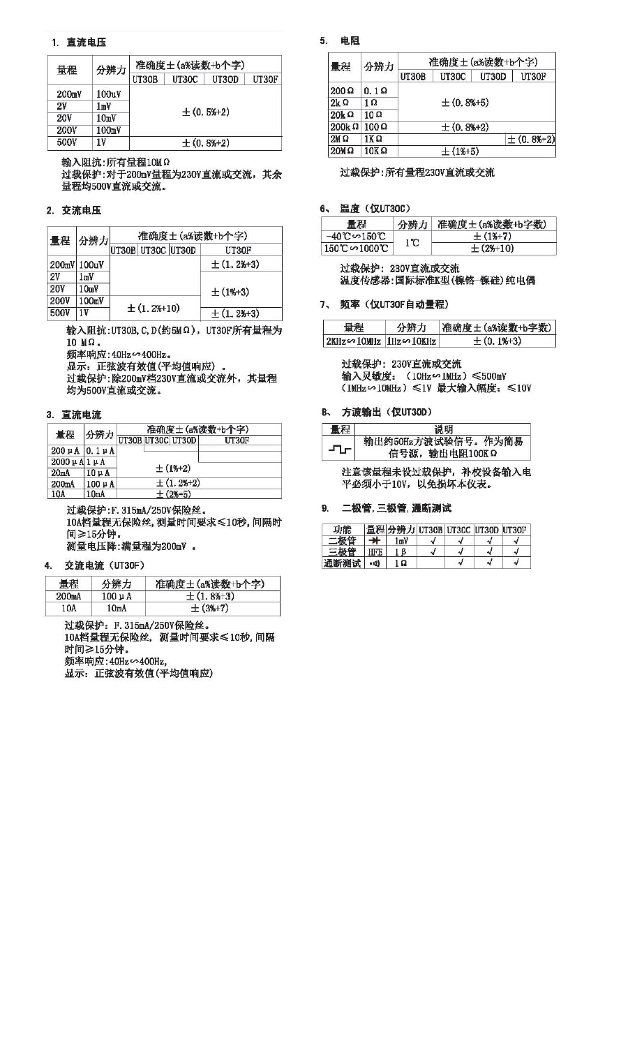 2. UT30B/C/D/F掌上數(shù)字萬(wàn)用表