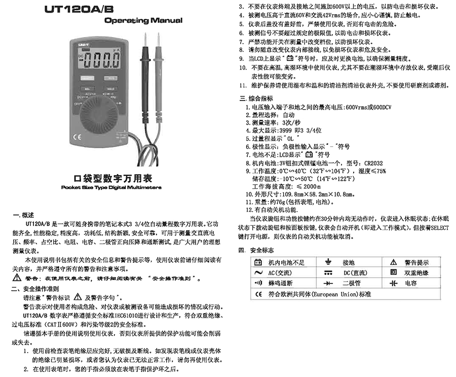 2. UT120A/B口袋型數(shù)字萬(wàn)用表