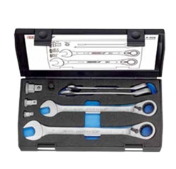 帶轉(zhuǎn)換頭用于1/4",3/8"和1/2"四方驅(qū)動以及1/4"旋具頭,塑料盒裝,尺寸:275x150x42mm,包含7UR 10、13、17、19/ 7RA-6,3、-10、-12,5/ 7RB-6,3.