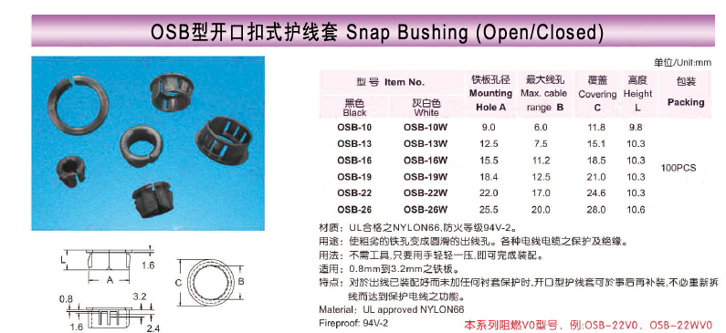 使粗劣的鐵孔變成圓滑的線孔.各種電線電纜作為保護和絕緣的用途.對于出線已裝配好而未加任何襯套保護時,開口型護線套可於事后再補裝(不必重新拆線)而達到保護線的功能.