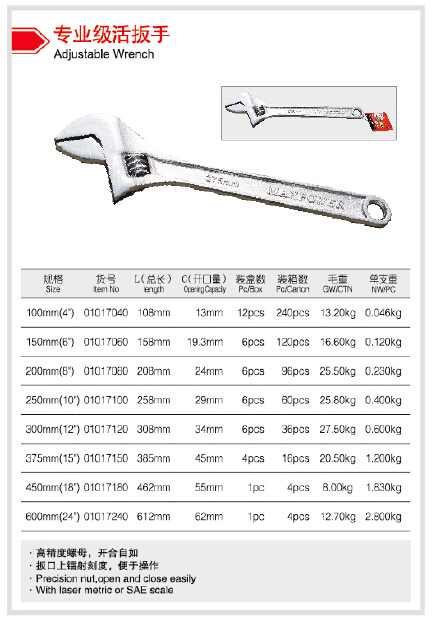 高精度螺母,開(kāi)合自如.扳口上鐳射刻度,便于操作.