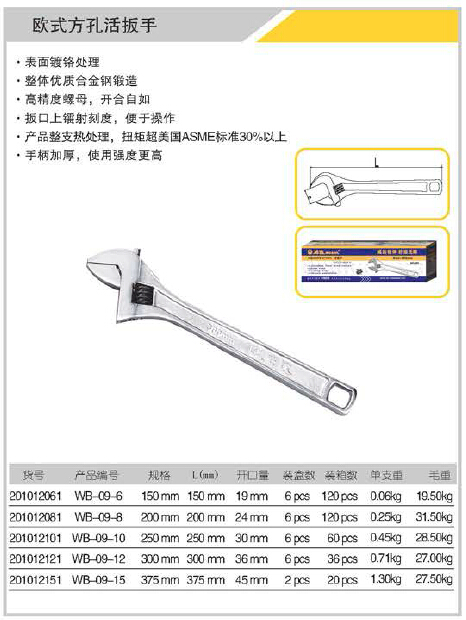 表面鍍鉻處理,整體優(yōu)質(zhì)合金鋼鍛造,高精度螺母,開合自如,扳口上鐳射刻度,便于操作.產(chǎn)品整支熱處理,扭矩超美國ASME標(biāo)準(zhǔn)30%以上,手柄加厚,使用強(qiáng)度更高.
