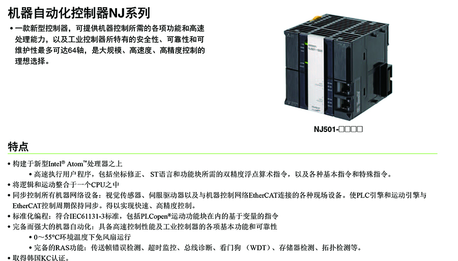 NJ系列可提高機(jī)器控制所需的各項功能和高速處理能力,以及工業(yè)控制器所特有的的安全性、可靠性和可維護(hù)性最多達(dá)64軸.