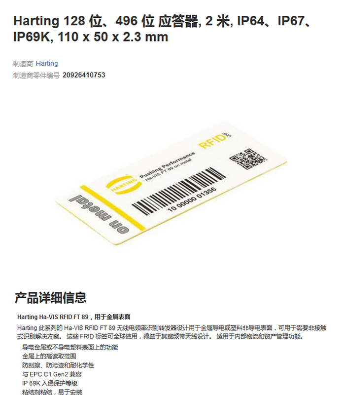 2. 用于金屬表面128/496位應(yīng)答器 Harting Ha-VIS RFID FT 89