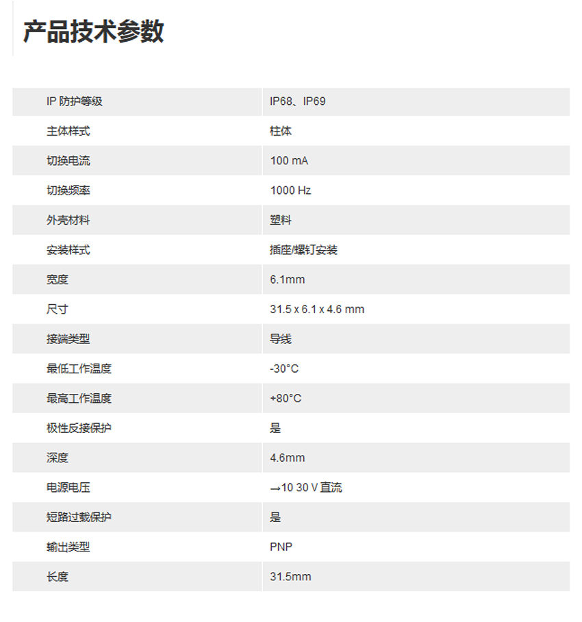 2. PNP輸出1000Hz磁感應(yīng)器,10~30V直流電源系列微型氣缸傳感器