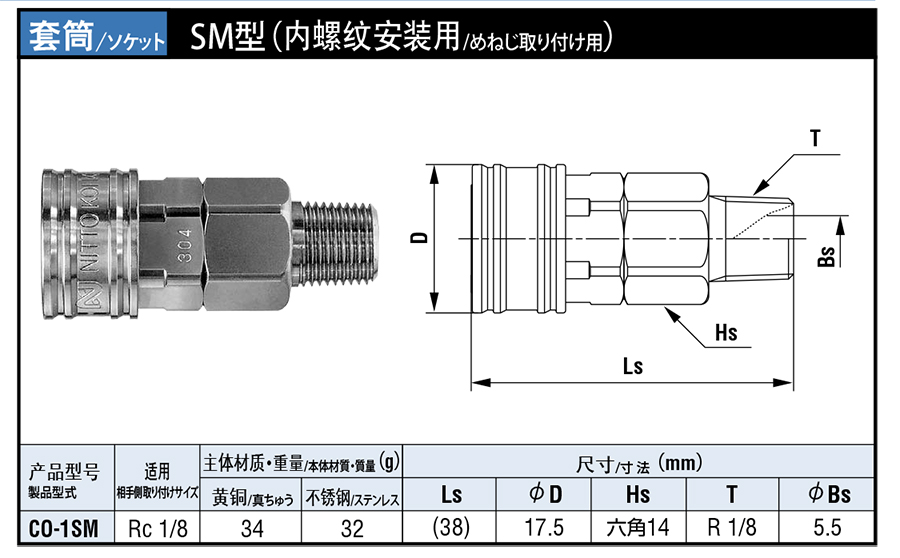 2. SM 內(nèi)螺紋安裝用小巧型快速接頭