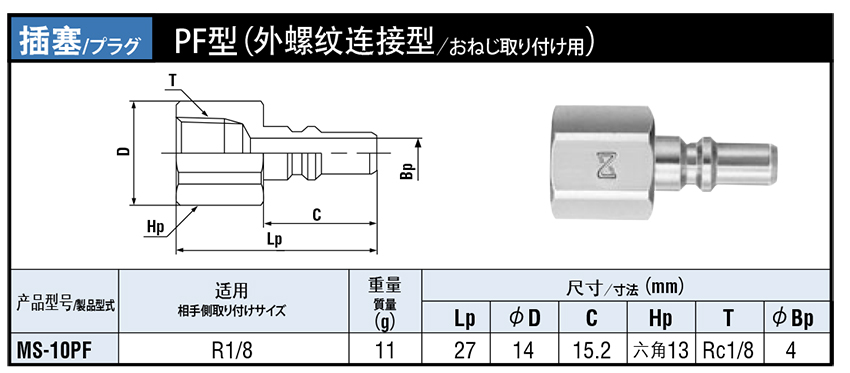 2. PF外螺紋連接型小巧型快速接頭