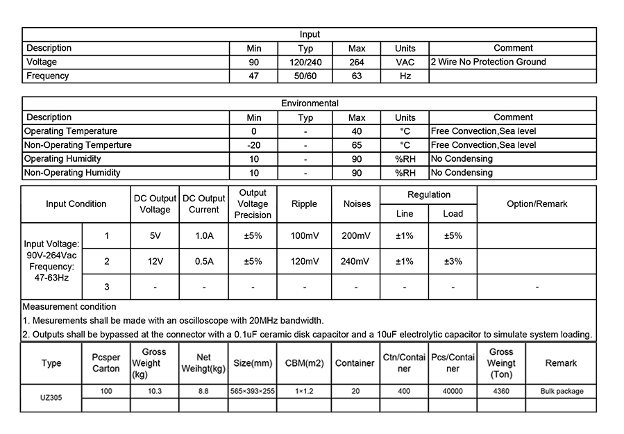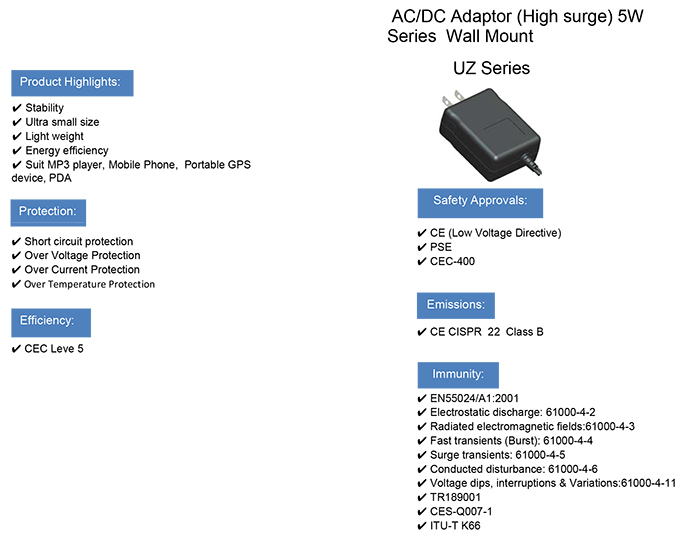 2. UZ 5W壁裝AC適配器