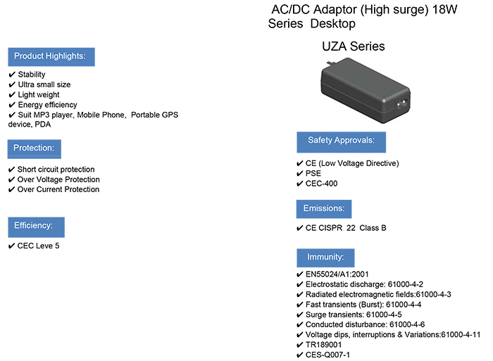 2. UZA 18W AC適配器