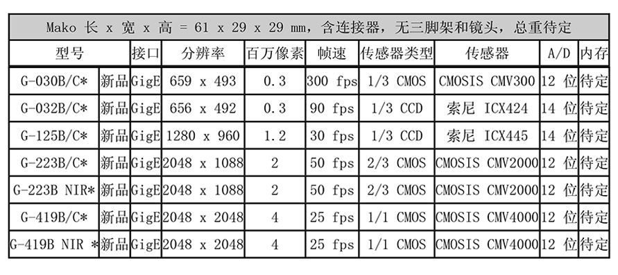 2. Mako主流機(jī)器視覺相機(jī)