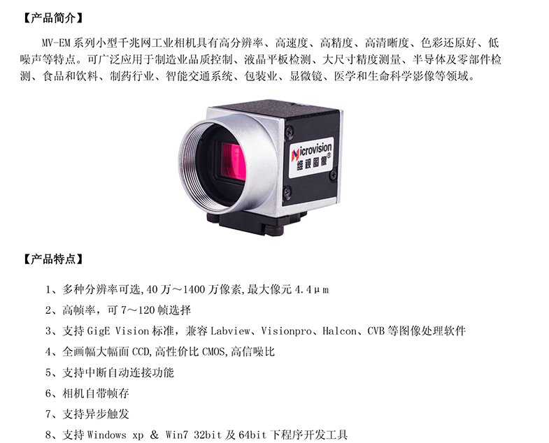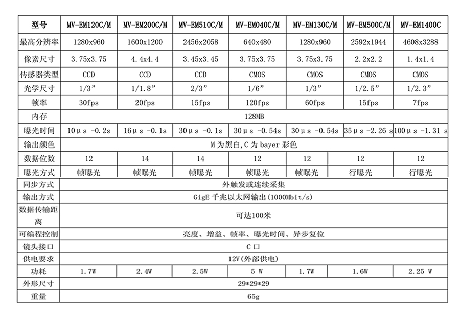 2. MV-EM系列小型GigE千兆網(wǎng)帶幀寸工業(yè)相機(jī)