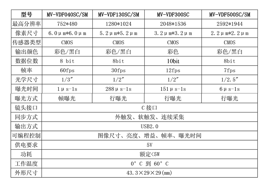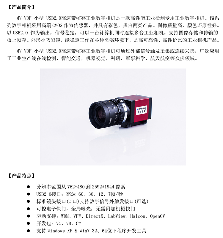 2. MV-VDF系列USB2.0接口高速帶幀寸工業(yè)數(shù)字相機