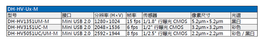 2. DH-HV-U-M系列Mini USB數(shù)字?jǐn)z像機(jī)