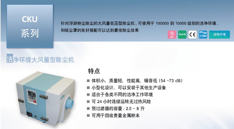 2. CKU系列潔凈環(huán)境大風量型除塵機
