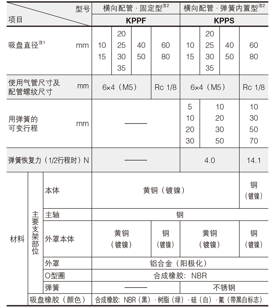 2. 真空吸盤(pán)橫向配管內(nèi)置彈簧型KPPS系列