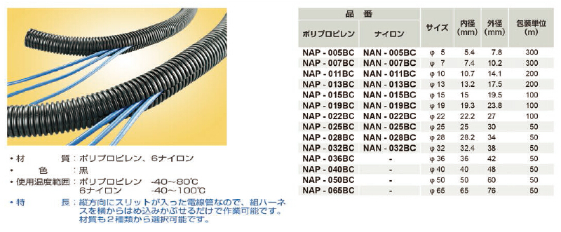 2. NAP系列 廣泛被應(yīng)用于汽車配線用,可保護(hù)電線電纜不受外力磨損及絕緣.