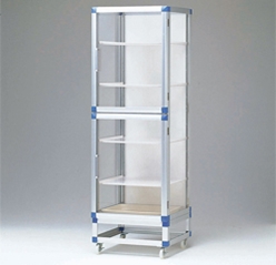 材質(zhì):主體/PMMA(丙烯樹脂)、框架/鋁合金、滾輪/PA(尼龍)、擱板/塑料(SP?WPN)、不銹鋼(SS?WSN)