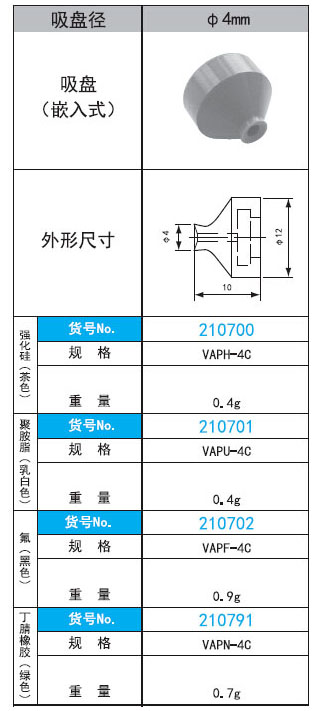 2. VAP-4C系列直徑4mm嵌入式真空吸盤