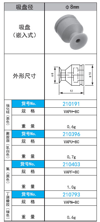2. VAP-8C系列直徑8mm嵌入式真空吸盤