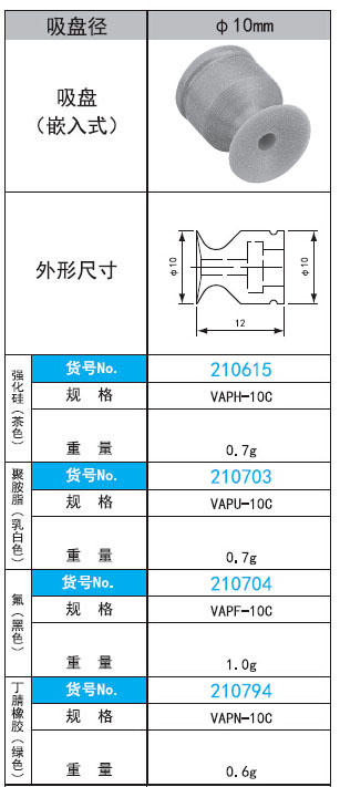 2. VAP-10C系列直徑10mm嵌入式真空吸盤(pán)