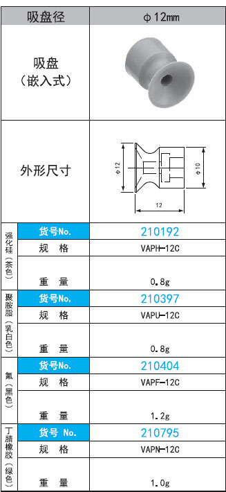 2. VAP-12C系列直徑12mm嵌入式真空吸盤
