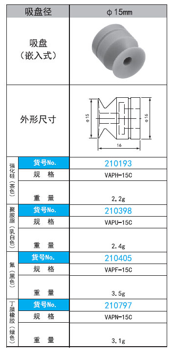 2. VAP-15C系列直徑15mm嵌入式真空吸盤
