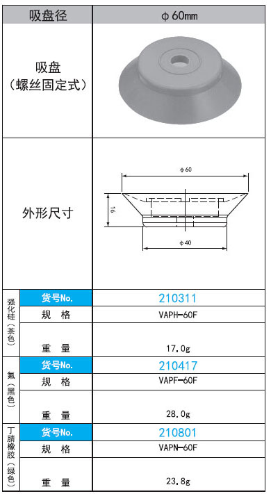2. VAP-60F直徑60mm螺絲固定式真空吸盤