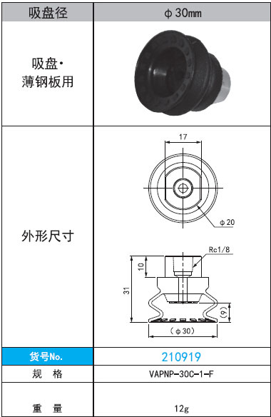 2. VAPNP-30C-1-F薄型鋼板用吸盤