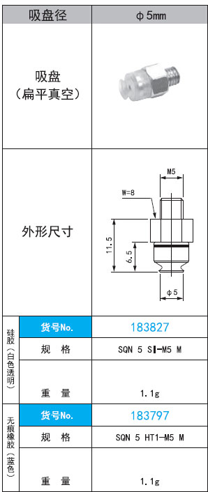 2. SQN 5 -M5 M直徑5mm扁平真空式吸盤