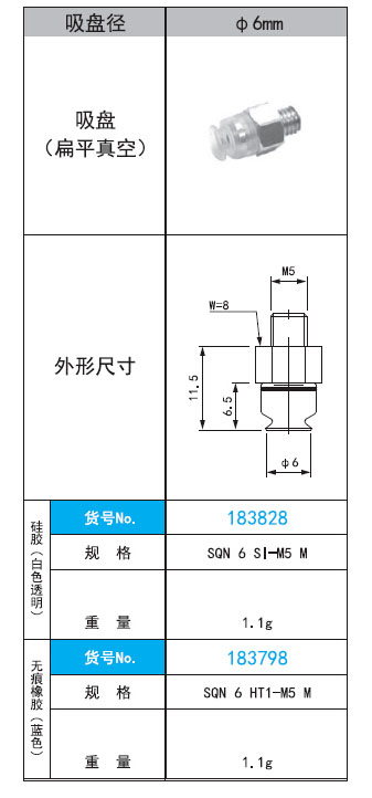 2. SQN 6 -M5 M直徑6mm扁平真空式吸盤