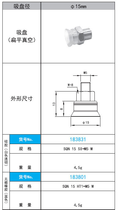 2. SQN 15 -M5 M直徑15mm扁平真空式吸盤