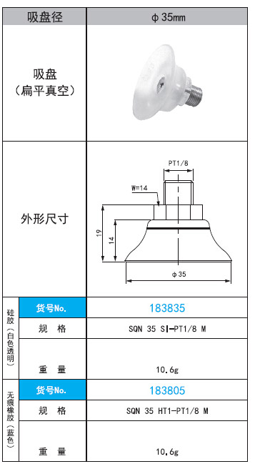 2. SQN 35 SI·HT1-PT1/8 M直徑35mm扁平真空式吸盤