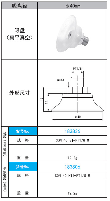 2. SQN 40 SI·HT1-PT1/8 M直徑40mm扁平真空式吸盤