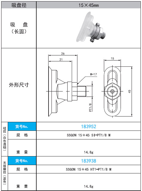 2. SSGON 15*45 SI·HT1 -PT1/8M直徑15x45mm長圓形吸盤