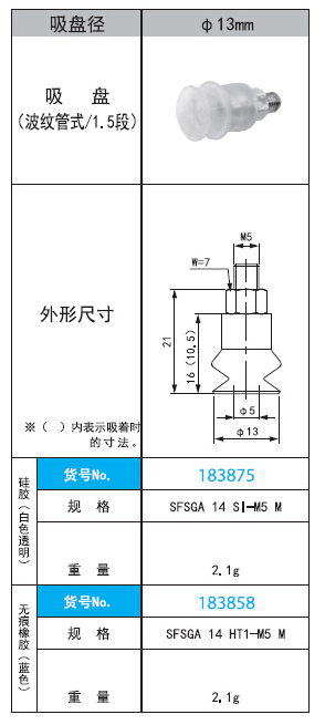 2. SFSGA 14 SI·HT1 -M5 M直徑13mm波紋管式/1.5段吸盤(pán)