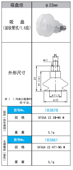 2. SFSGA 22 SI·HT1 -M5 M直徑22mm波紋管式/1.5段吸盤