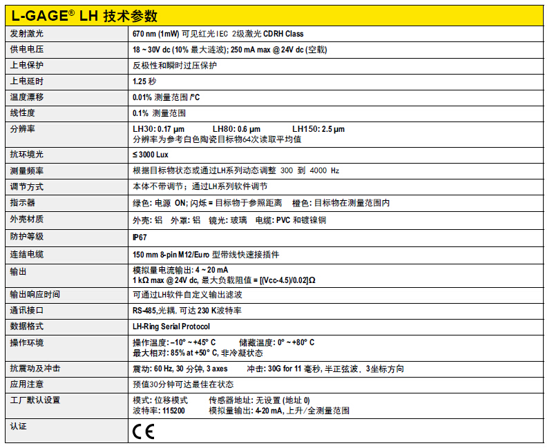 LH系列為一款基于三角測量法的高精度激光位移傳感器。可高速,非接觸,及可靠地測量各種目標物如:金屬, 木材, 陶瓷, 紙張和上漆目標物。 其1024像素CMOS線性光學組件可克服以往PSD激光位移傳感器因為顏色變化和材料不同而過多影響其測量精度。