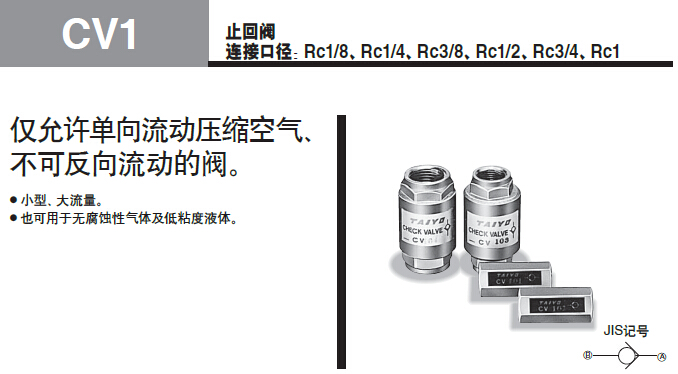 CV1系列 僅允許單向流動(dòng)壓縮空氣、不可反向流動(dòng)的閥