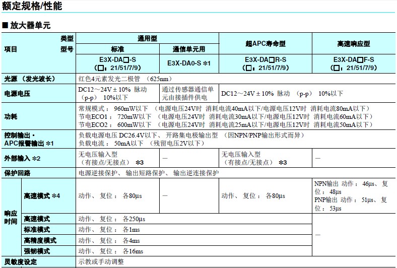 也備有適用于EtherCAT通信單元/CompoNet通信單元的E3X-DAO-S型號;