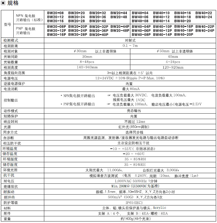 多樣化產品(22種類),(光軸距離:20/40mm,光軸高度:120—960mm);