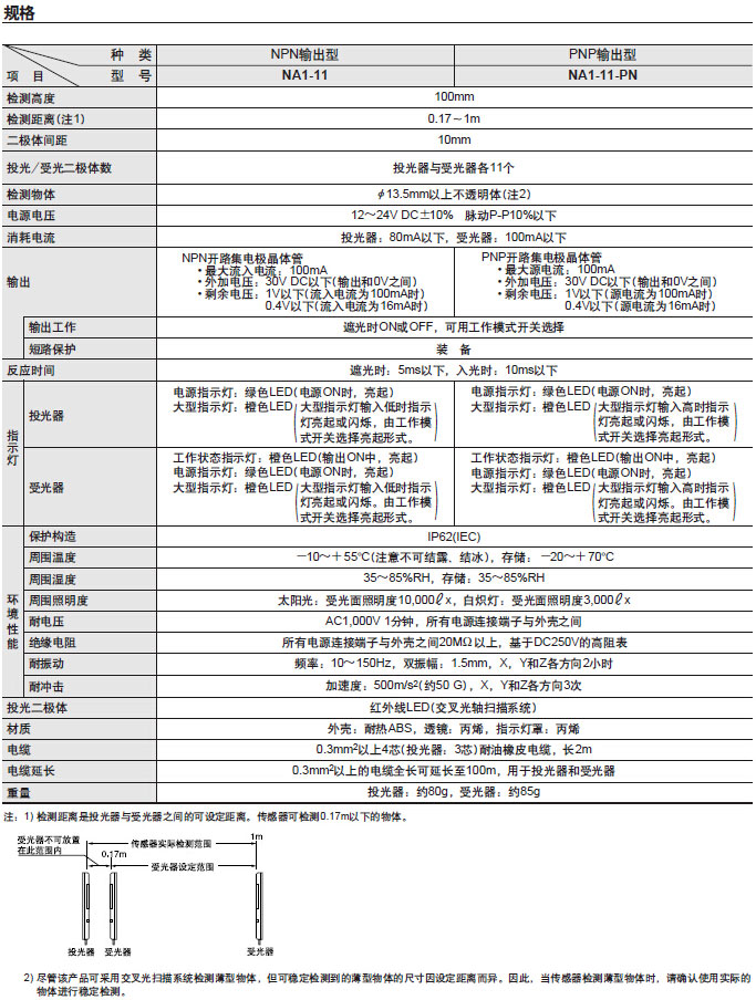 NA1-11系列小型/薄型物體檢測區(qū)域傳感器